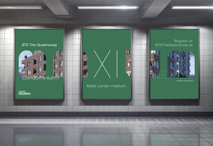 Our goal was to develop a brand for Equiton Developments’ first Maxium project, 875 The Queensway, that stood out in the marketplace, peaked people’s curious about Maxium, created mid-rise condo envy, and solifided Equiton’s reputation as a trusted, recognizable leader in the real estate development industry.