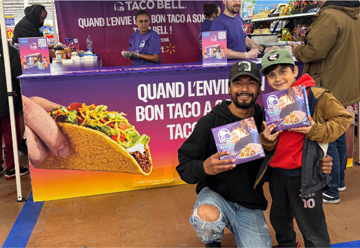 Taco Bell challenged us to drive trial of their new at-home kits, strengthen brand awareness, and bring its iconic flavours to life in-store at Walmart. The experience needed to be engaging, accessible, and seamlessly integrated into Walmart locations, while reinforcing brand identity and the connection to the Coca-Cola Company.